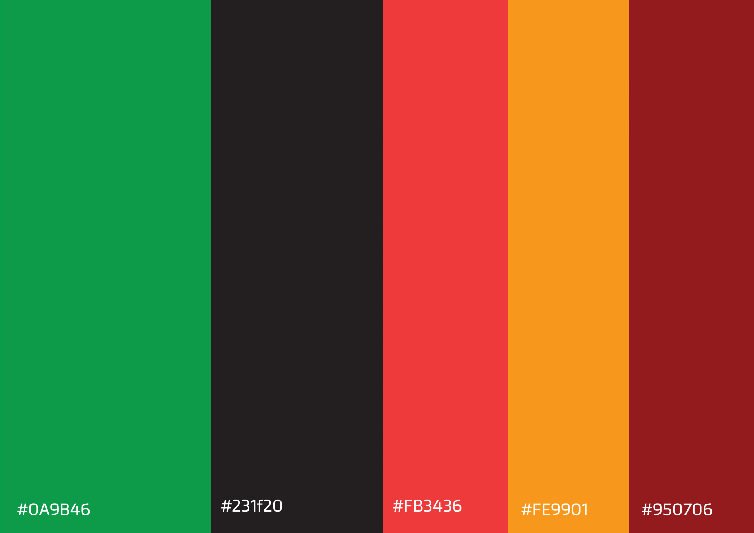 Represents optimism, creativity, and the warmth of African communities. - #0A9B46 – Emerald Green